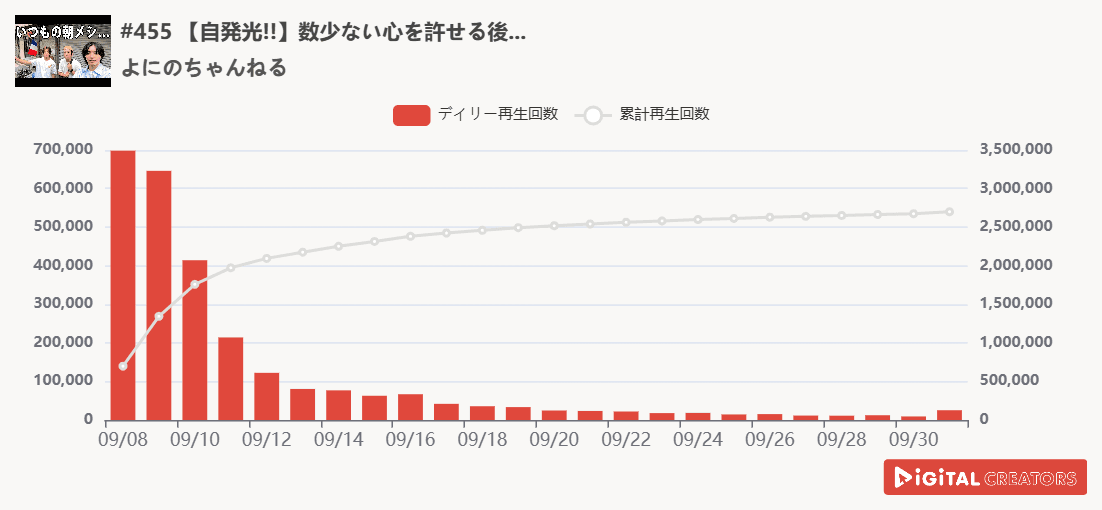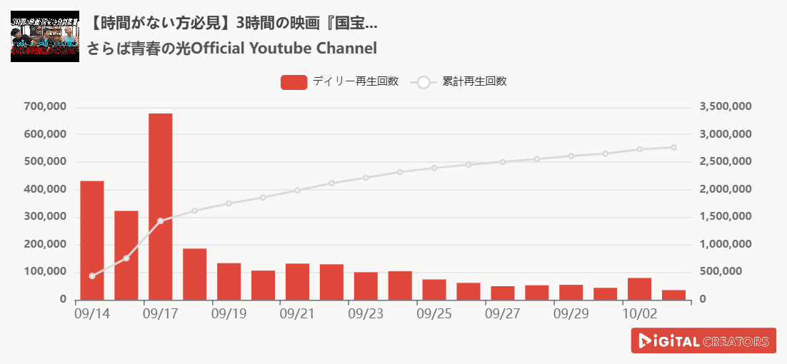 尚、対象は、企業公式チャンネルやニュース動画を除く、1分以上の動画。(切り抜きチャンネルを除く)※データ集計は10月1日で、広告による再生数含まれる可能性があります。